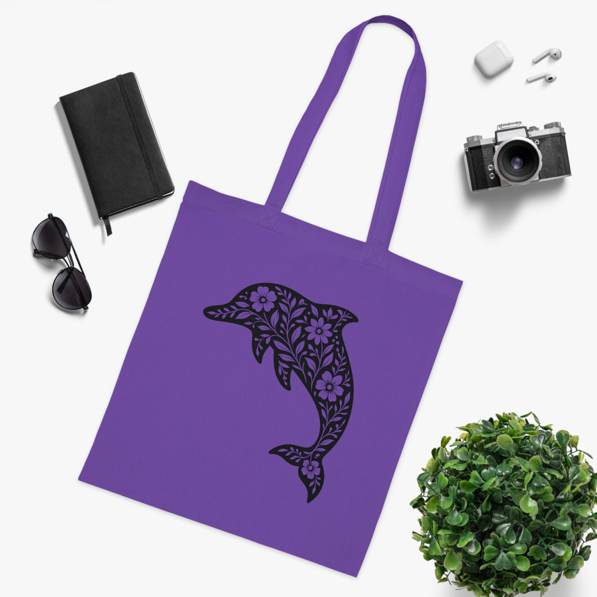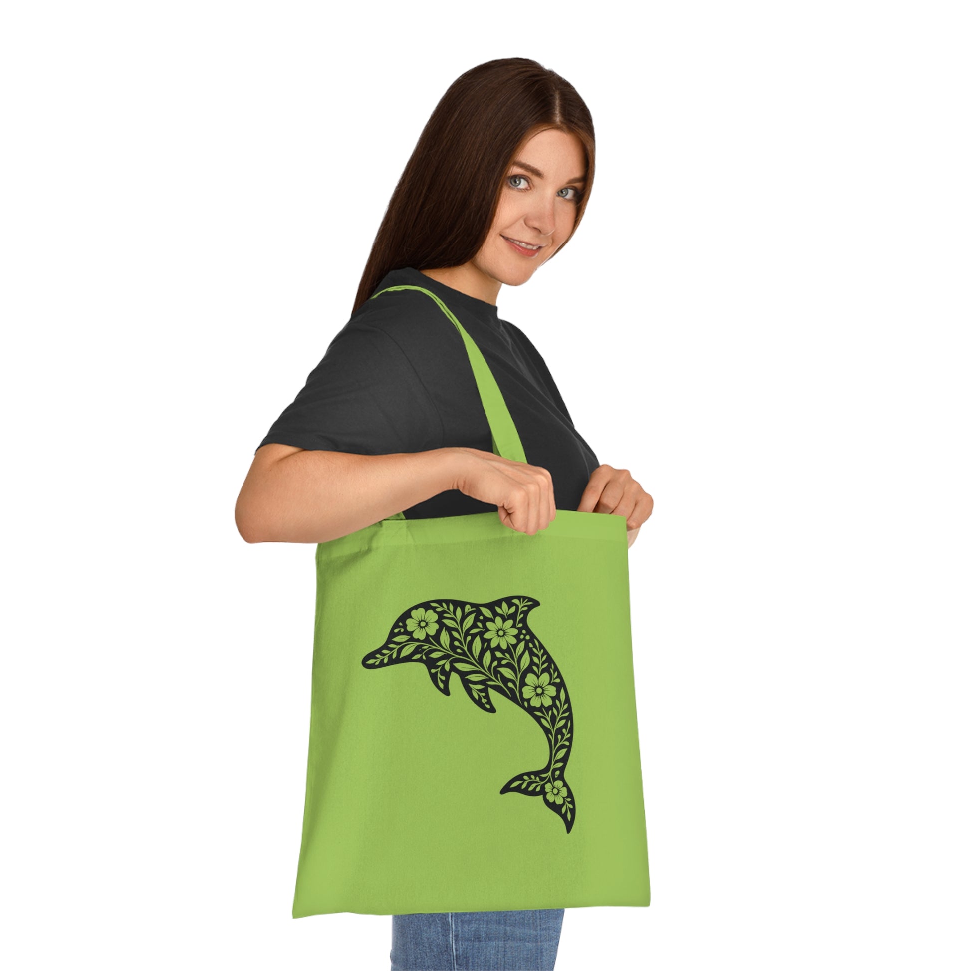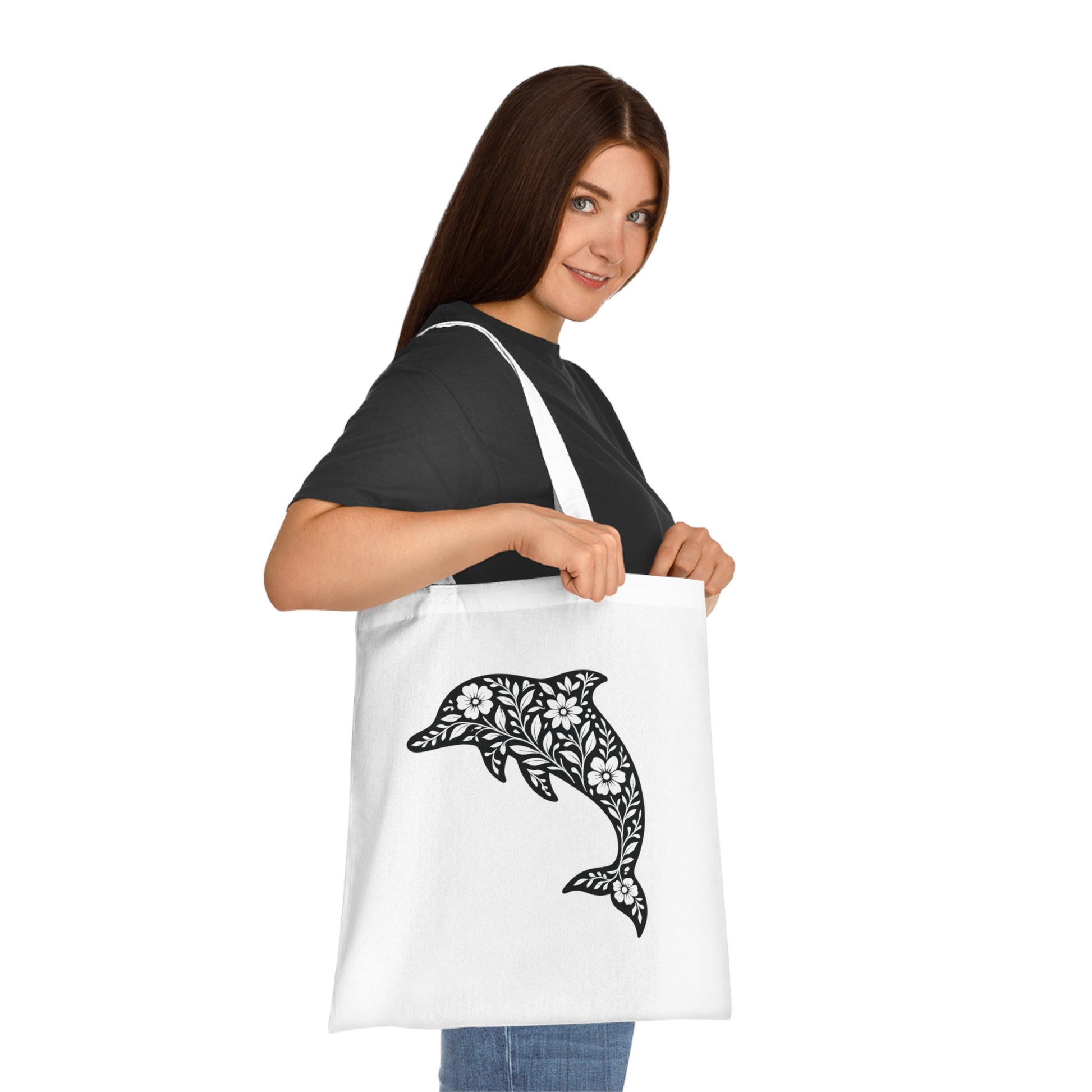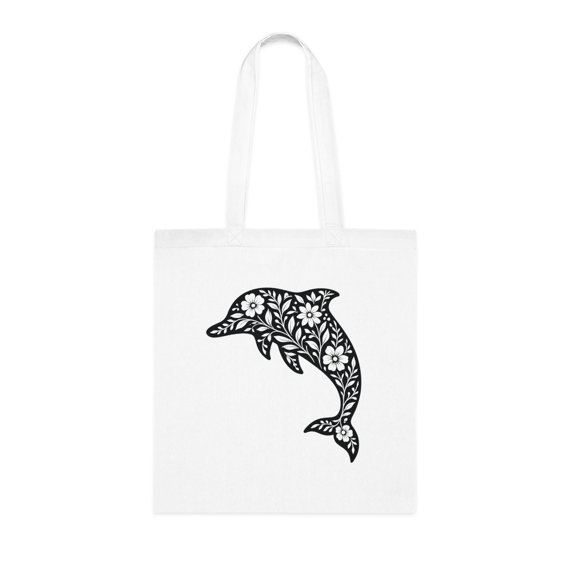 Floral Dolphin Silhouette Tote Bag