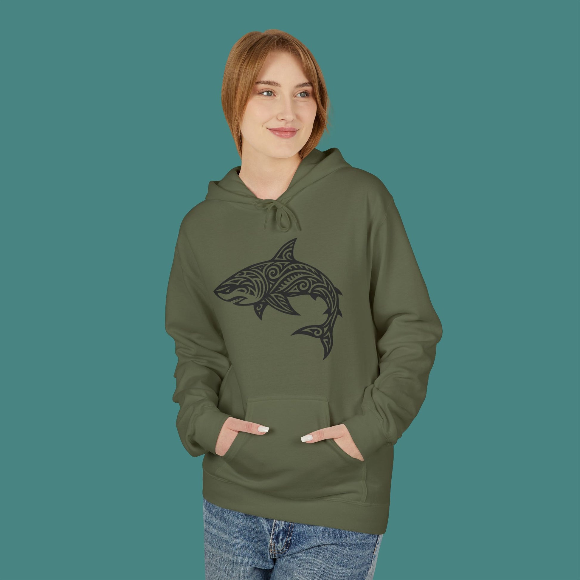 Tribal Tattoo Shark Fleece Unisex Hoodie