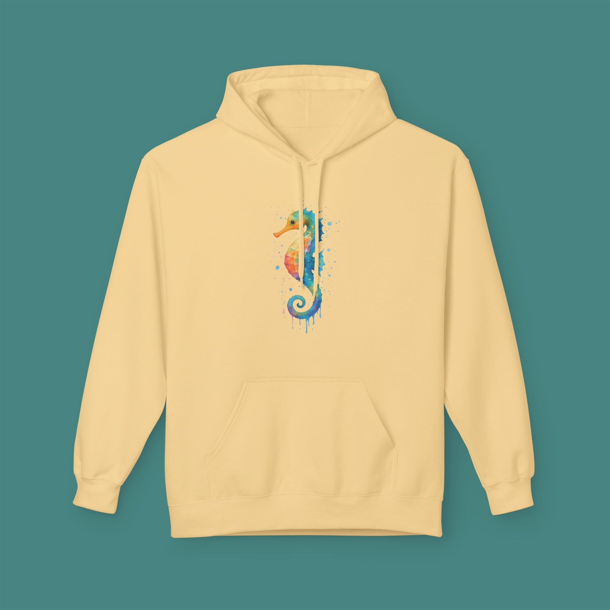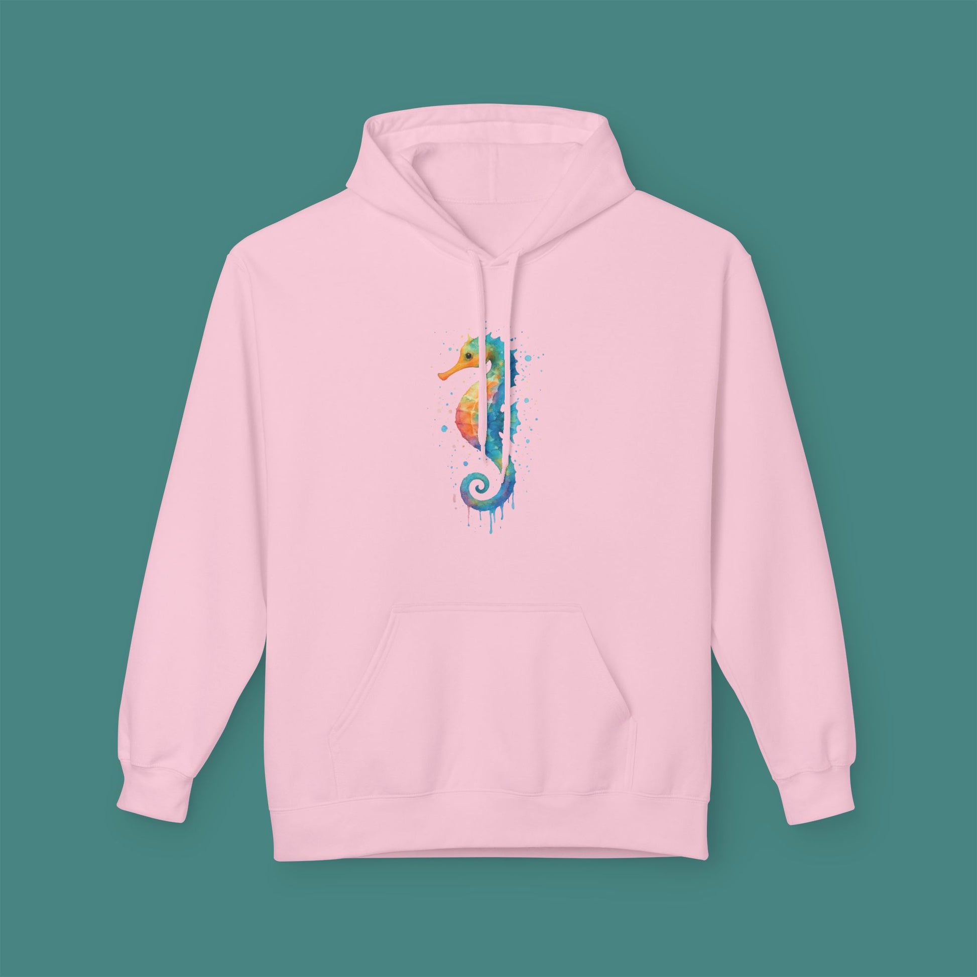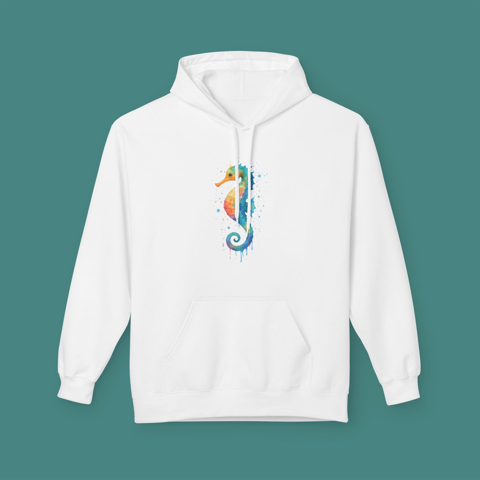 Watercolor Splash Seahorse Fleece Unisex Hoodie